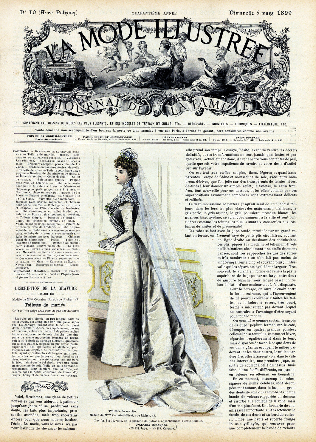 La Mode Illustree # 10, March 1899 French Fashion Magazine Wedding Gown