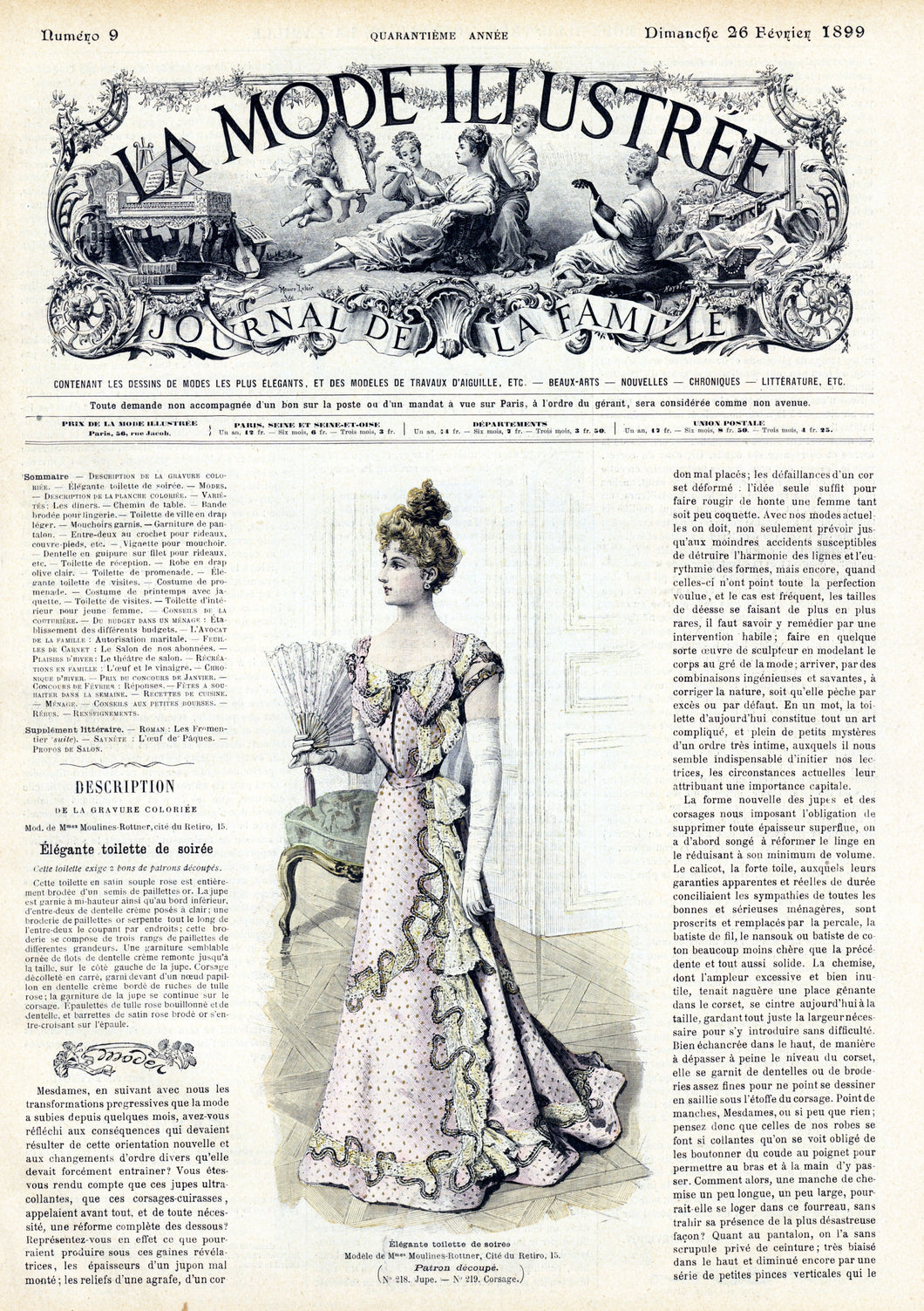 La Mode Illustree # 9, Feburary 1899 French Fashion Magazine
